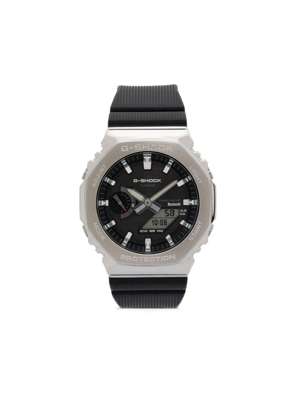 The Casio G-Shock GBM-2100-1AER – 43mm offers rugged durability, advanced technology, and the signature slim “CasiOak” silhouette. Equipped with Bluetooth smartphone link, Tough Solar power, shock resistance, and 200m water resistance, this model delivers precision and reliability in any environment. The black resin case and strap ensure lightweight comfort, while the mineral glass and scratch-resistant finish enhance long-term durability.